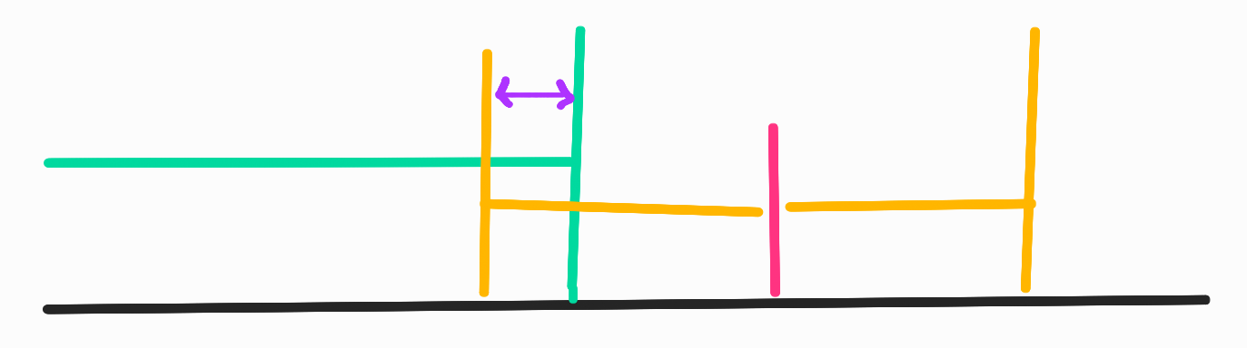 여기서 2는 1의 과정에 포함되는 발상으로 볼 수 있다. 하지만 가장 끝 센서가 2의 상황이면 1의 과정이 없으므로 갱신이 될 수 없다. 이는 따로 고려해 최대 장벽 길이 L과 딱 맞게 배치하는 방법을 사용한다.